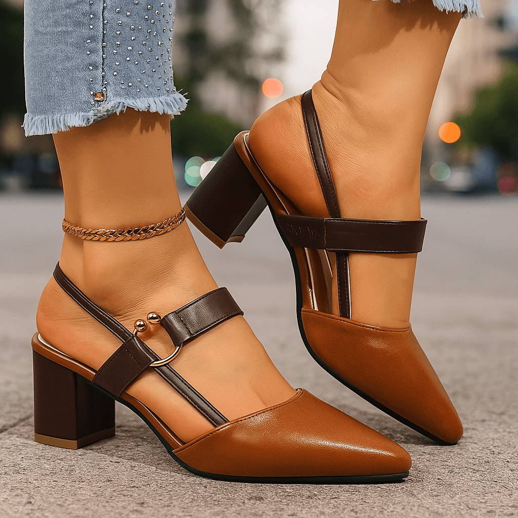 Crafted in rich leather with a gold ring accent, these heels upgrade your outfit with a simple but striking detail. The slingback strap and block heel keep you comfortable all day.